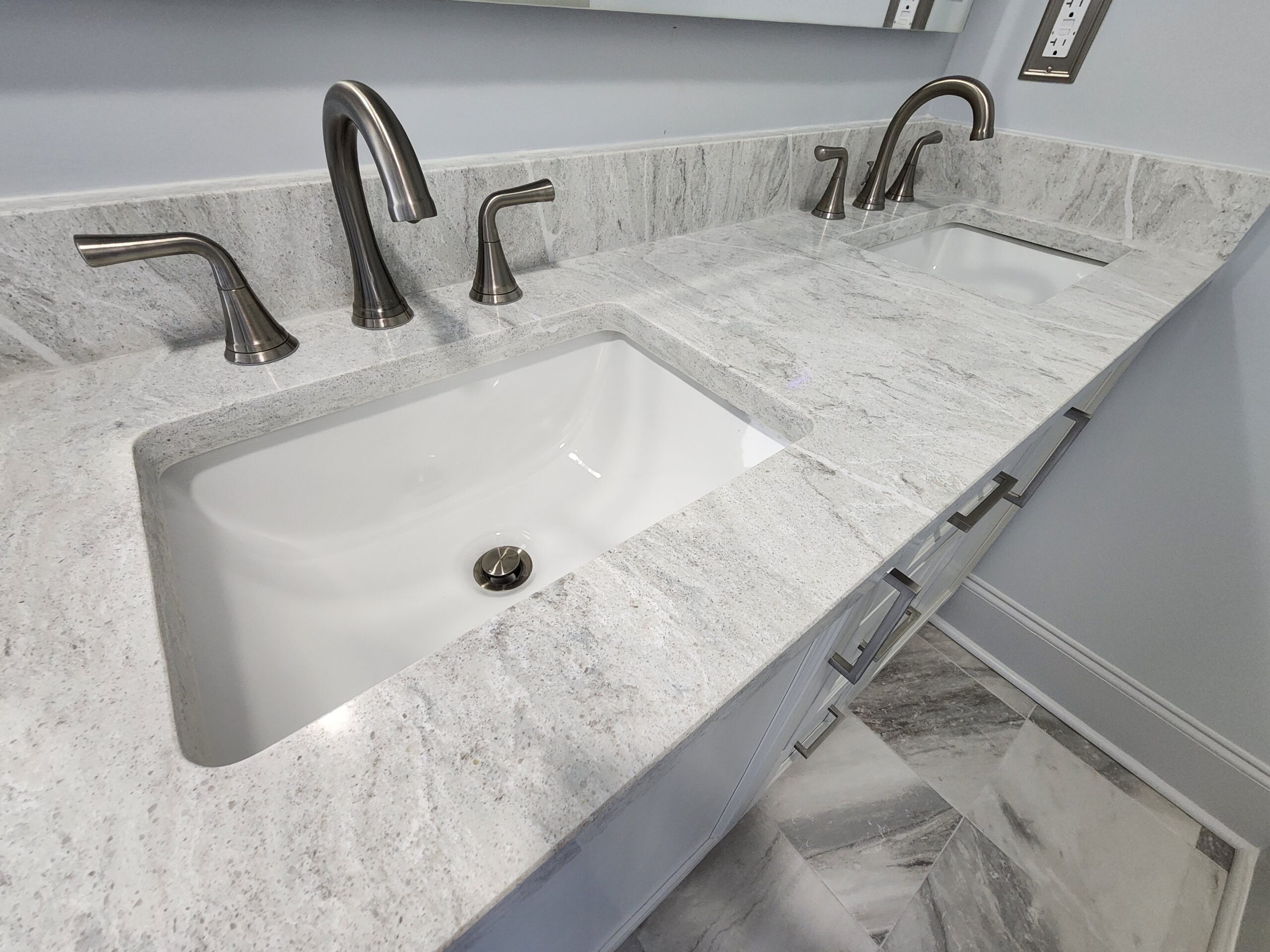 Our vanity gallery showcases bathroom projects designed with both practicality and aesthetics in mind. The spaces shown demonstrate a variety of cabinet styles, countertop materials, and layouts tailored to different bathroom sizes and needs.